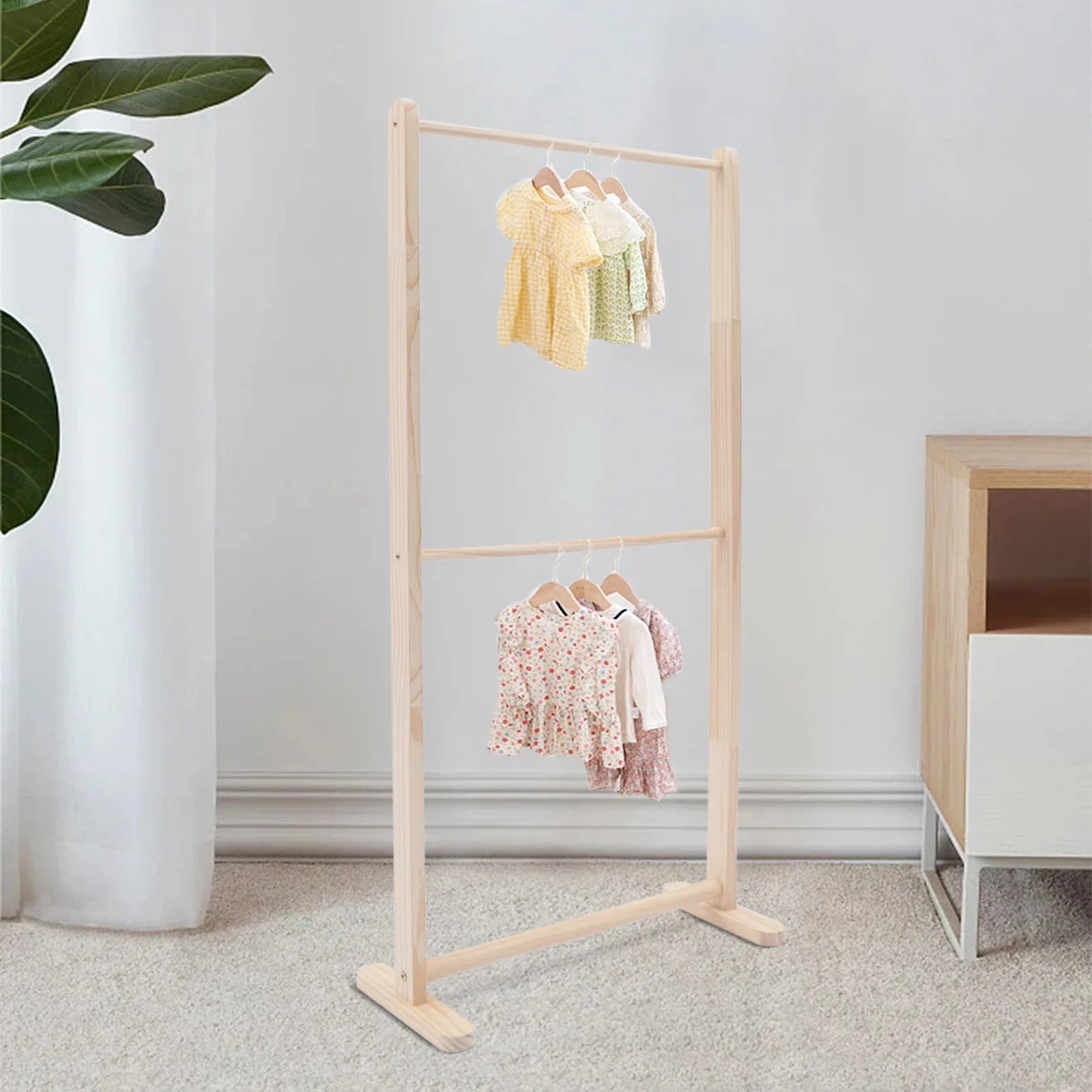 High-quality Material: This clothing stand is made of high-quality pine wood, which is tough and durable to extend its service life.